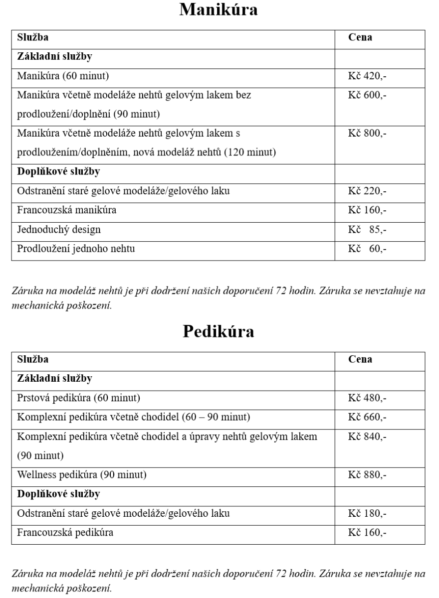 Nabízíme přístrojovou pedikúru a manikúru. Služby jsou poskytovány v oddělené místnosti s veškerým vybavením.